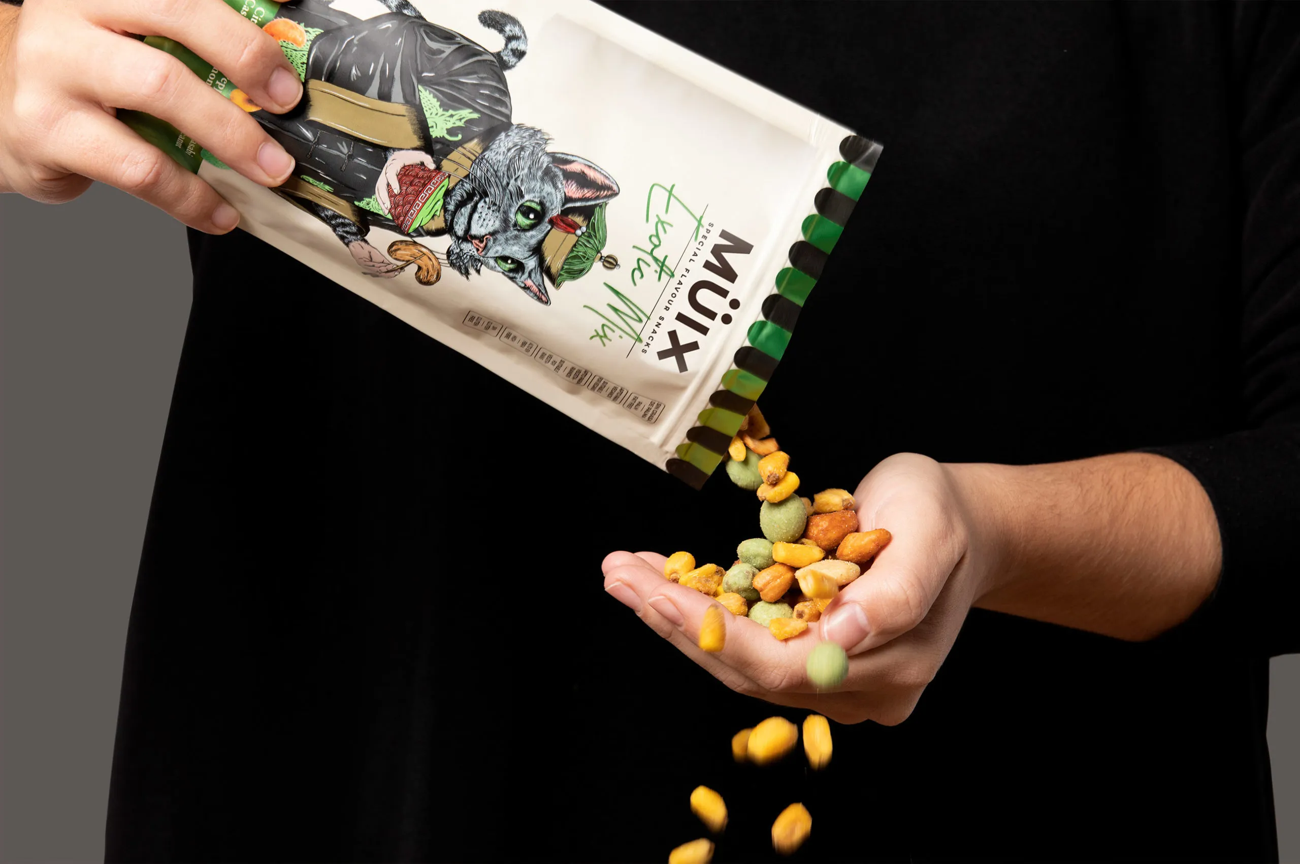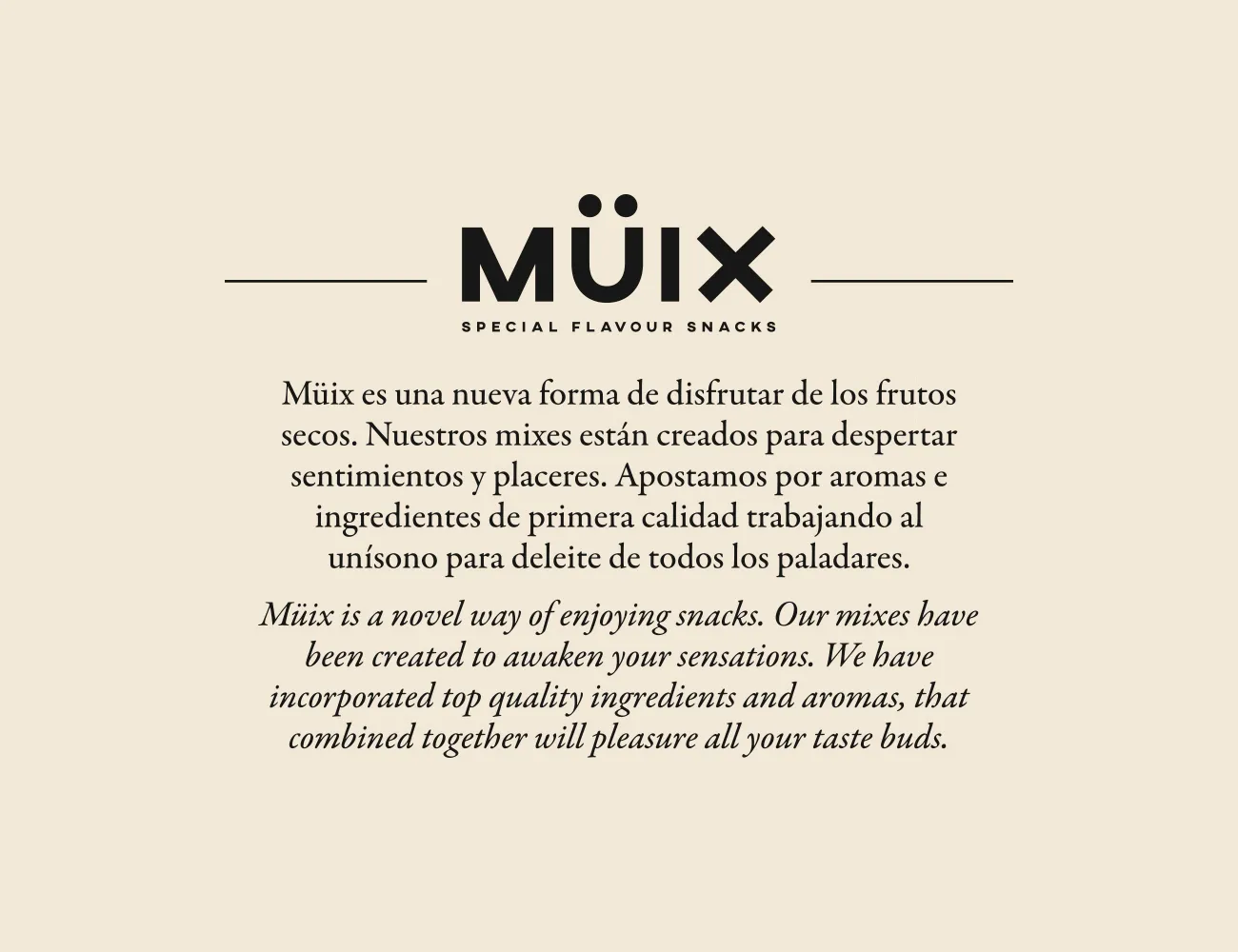 Barquellas零食品牌和包裝設(shè)計(jì)項(xiàng)目Müix。一個(gè)巴倫西亞品牌的美味堅(jiān)果,一個(gè)大膽的創(chuàng)新,組合和口味的賭注,以喚醒感覺和樂趣,扭轉(zhuǎn)了該公司的家庭傳統(tǒng)。該系列包括兩個(gè)不同的類別,民主和高級(jí)。