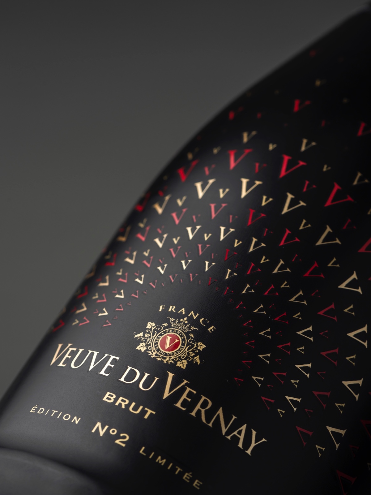為了擺脫法國起泡酒的一些傳統(tǒng)視覺編碼,DAf與客戶一起定義了與現(xiàn)代法國女性和當代法國文化精髓相一致的包裝。第一次迭代展示了銳利的金色線條和點綴的小V的幾乎是裁縫式的表現(xiàn),最新的瓶套展示了復雜的、不斷擴大的小紅色和金色V的噴霧,在黑色背景下閃爍,喚起液體的沸騰,同時表現(xiàn)出當代法國的女性氣質(zhì)。Vs始終牢記起泡酒的名稱??蛻魧@一當代轉(zhuǎn)變感到滿意。