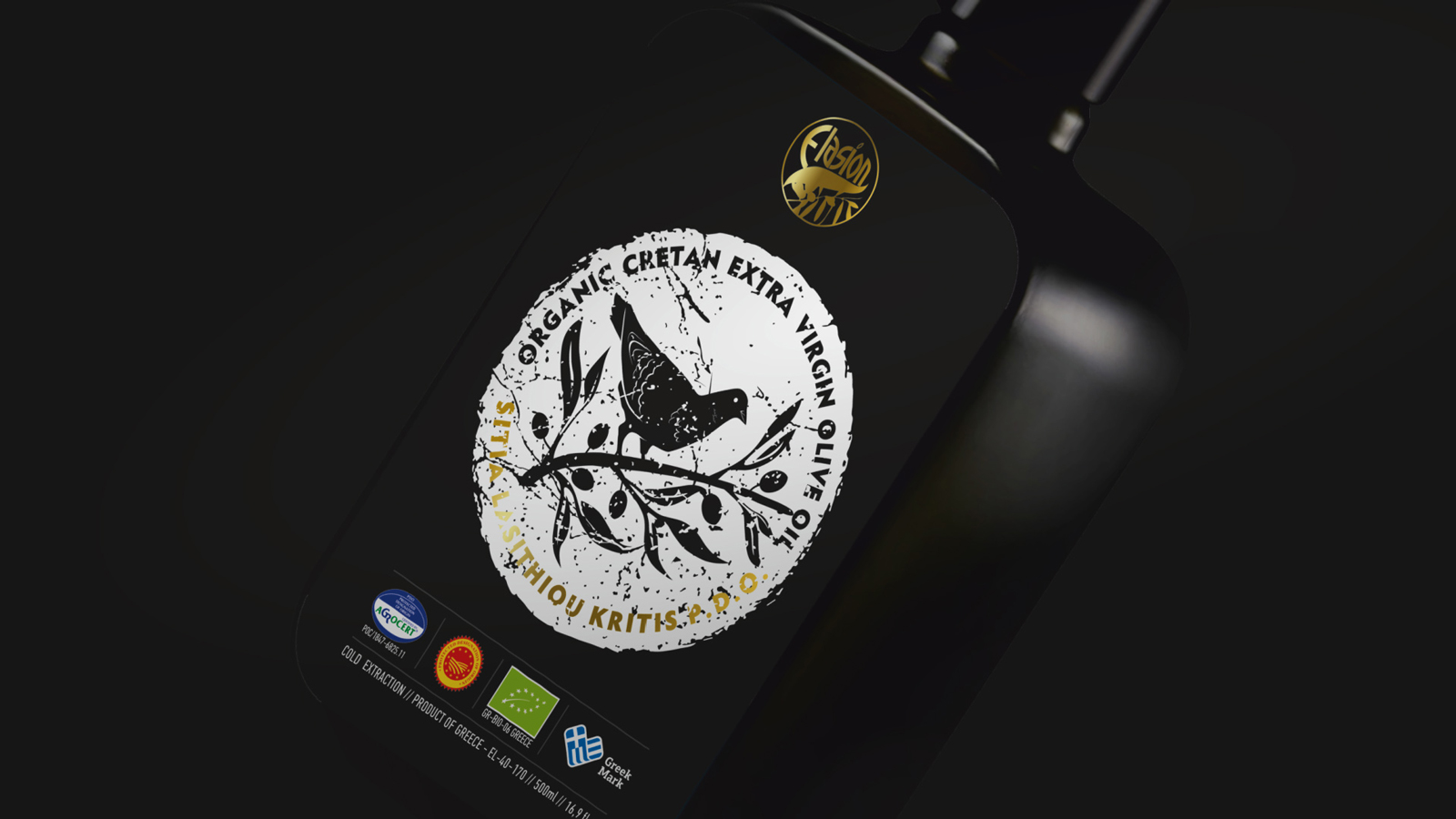 Elasion公司的有機克理坦特級初榨橄欖油P.D.O.新產(chǎn)品標簽是我們團隊最近的設計項目之一。