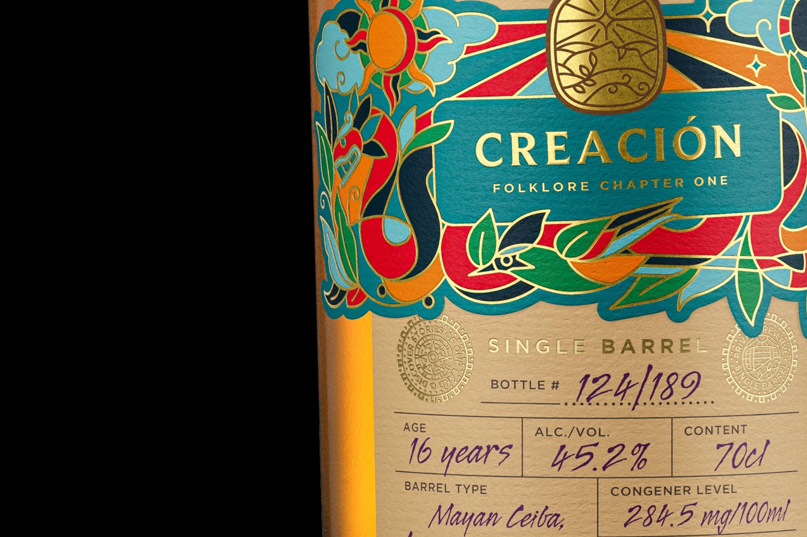 充滿活力的彩色插圖和熱箔的使用立即將 Cihuatan 的視覺(jué)識(shí)別與新的 Folklore 系列聯(lián)系起來(lái)。它與核心標(biāo)簽及其精心制作的展示形成鮮明對(duì)比,具有手寫技術(shù)信息,包括瓶號(hào)、年份、桶型和所有者姓名,以個(gè)性化每一瓶。