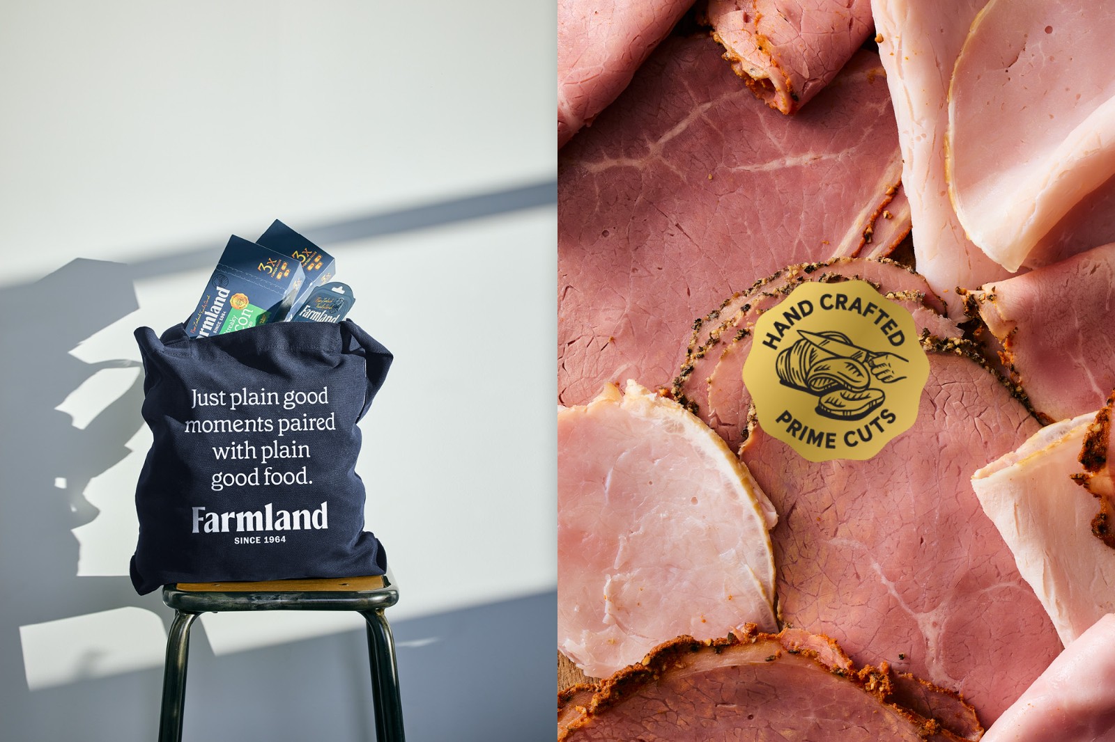 的謙遜簡約和對他們制造的產(chǎn)品的純粹自豪感來說明這一意圖。Farmland 的產(chǎn)品范圍從日常肉片、適合社交奶酪板的切塊到供全家食用的肉類。這些產(chǎn)品的碎片化造成了混亂的品牌形象,在某些情況下,品牌是如此之小以至于難以辨認(rèn)它來自何方。與其價格點的競爭對手相比,品牌屏蔽幾乎不存在。整個產(chǎn)品組合發(fā)生了巨大的變化,從家族企業(yè)檔案中的攝影和圖像目錄中獲取線索。直接取自傳統(tǒng)屠夫圍裙的豐富單調(diào)海軍藍(lán)應(yīng)用于整個產(chǎn)品組合,為了進一步增強這種顏色的影響,沒有使用會阻礙或分散色塊效果的食物攝影。應(yīng)用于整個產(chǎn)品組合——與使用全彩印刷的競爭對手相比,這在所有類別領(lǐng)域創(chuàng)造了一個獨特而突出的品牌塊。
