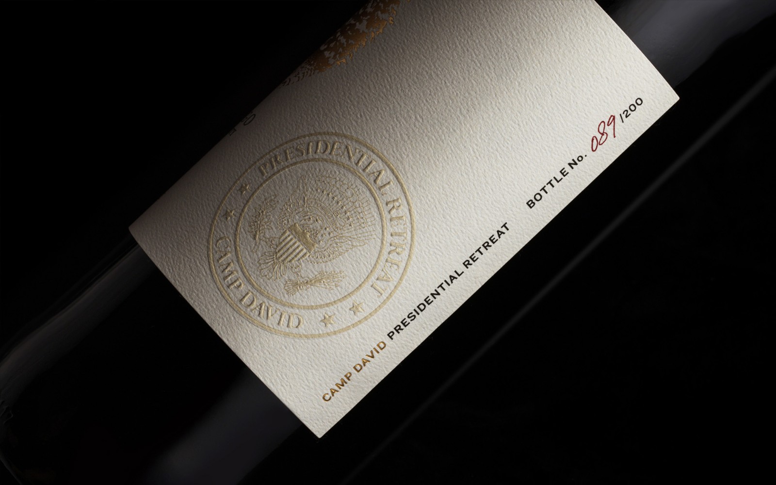 奢華的天然毛氈標(biāo)簽具有優(yōu)雅的金箔觸感,包括 Camp 著名標(biāo)記的木刻插圖、正面和中心。每個(gè)限量發(fā)行的瓶子都印有官方的戴維營(yíng)總統(tǒng)度假勝地印章,按順序編號(hào),頂部是品牌天然軟木塞和鋁箔膠囊,并裝在一個(gè)帶有火烙印的濃縮咖啡色木盒中。