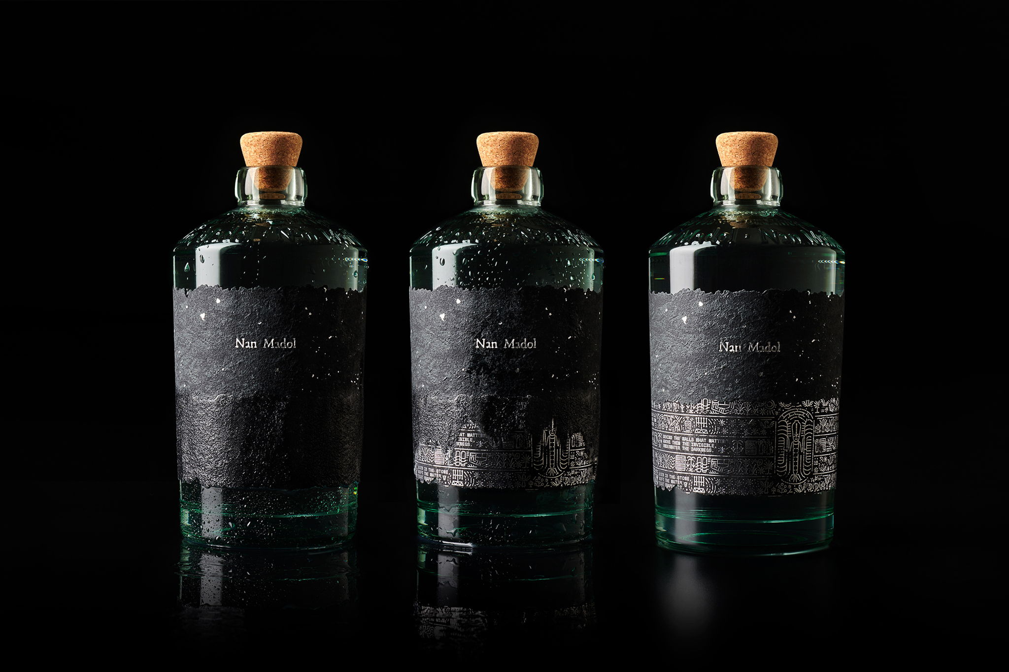 Nan Madol 的瓶子強(qiáng)調(diào)感官體驗(yàn)。由 Estudio Maba 設(shè)計(jì),瓶子的標(biāo)簽呈現(xiàn)為半浸沒狀態(tài),展示了水對(duì)石頭的影響。使用的材料、可溶解的紙、再生玻璃和紋理玻璃,繼續(xù)增加感官體驗(yàn),創(chuàng)造出一個(gè)神秘的瓶子,同時(shí)讓人感覺高貴和突出。