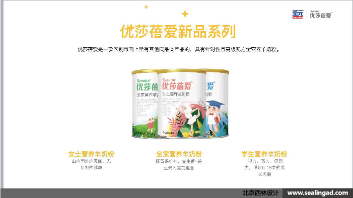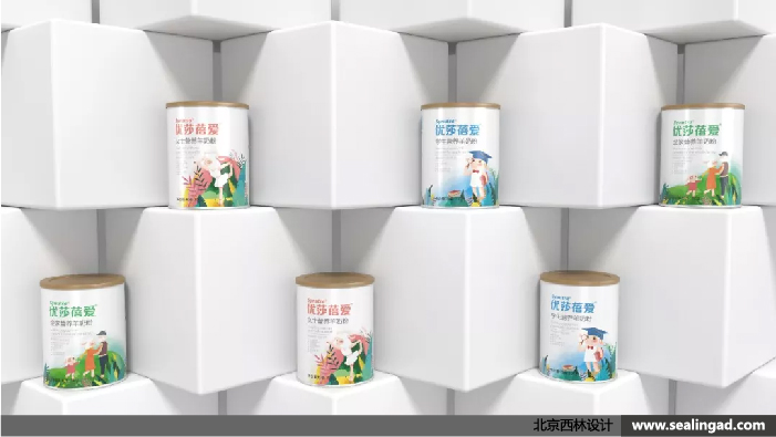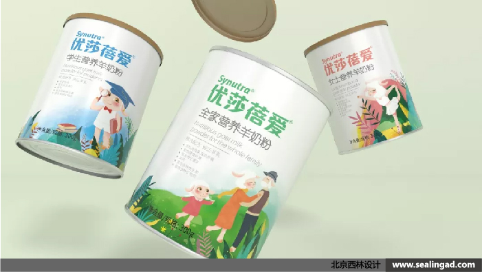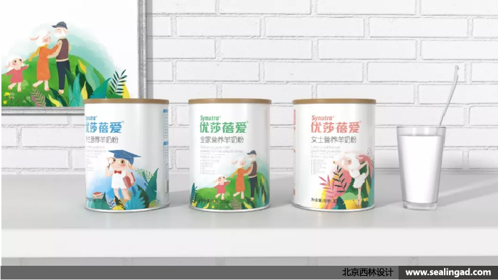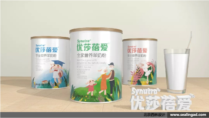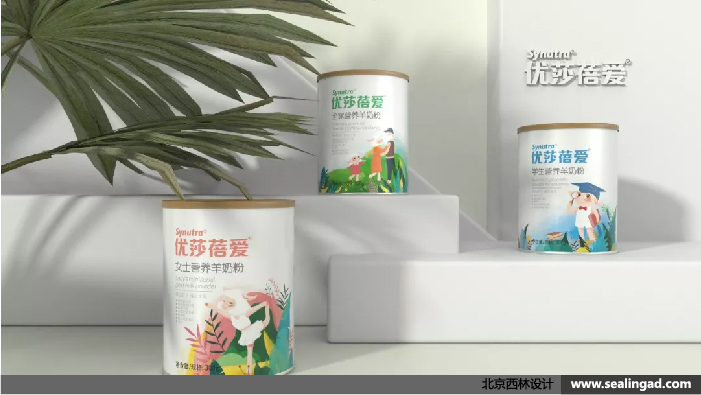 這是去年西林助力優(yōu)莎蓓愛打造高鈣營養(yǎng)羊奶粉,女士營養(yǎng)羊奶粉,中老年營養(yǎng)羊奶粉包裝設計系列