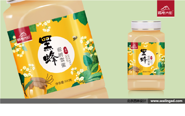 福壽大街牌黑蜂椴樹雪蜜包裝設(shè)計