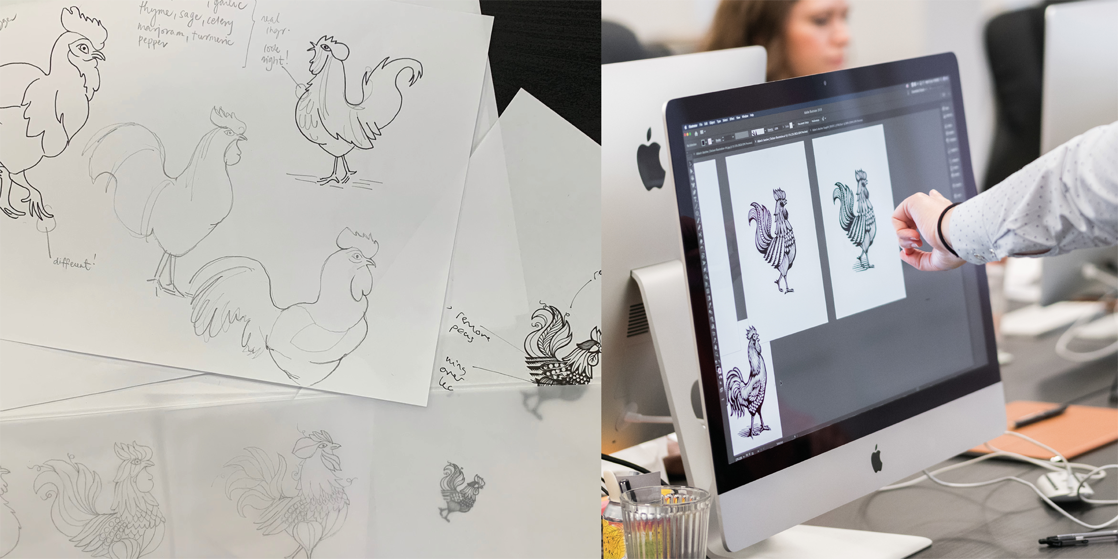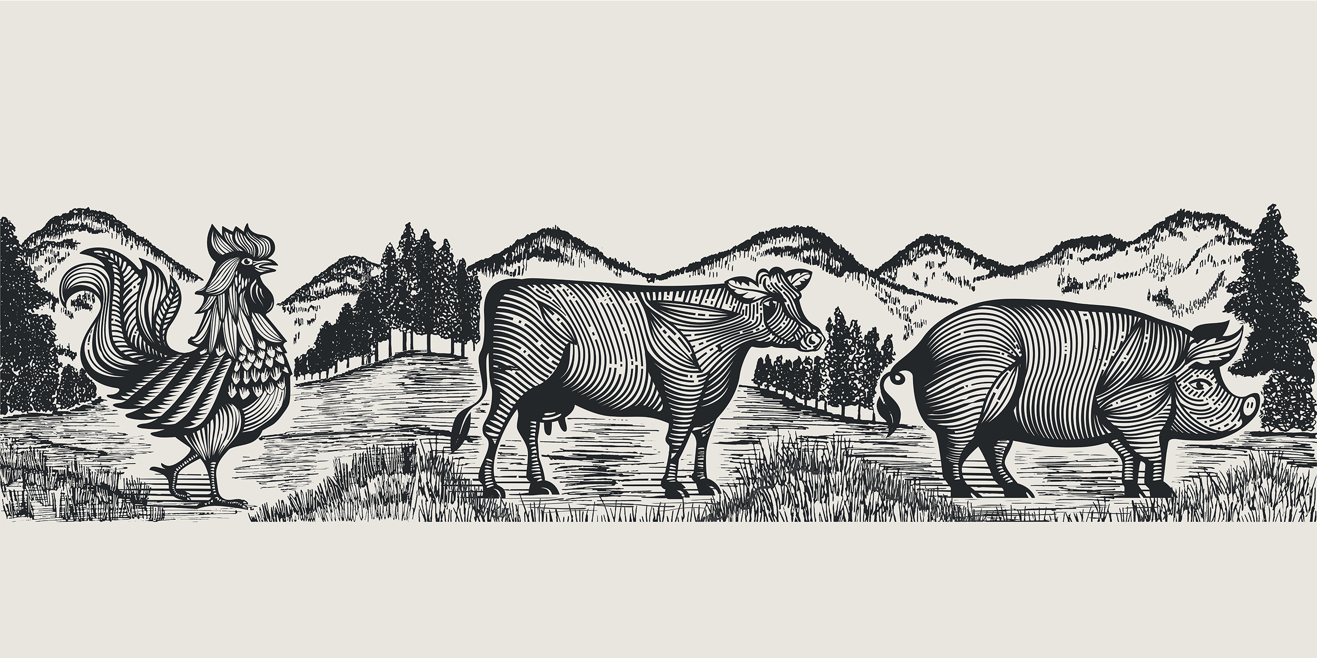 從自然出發(fā),方丈的屠夫以其主廚主導的品質(zhì)而自豪。屠夫的視覺語言充滿了傳統(tǒng)的工藝暗示,如黑板紋理和手工插圖,但這種美學在植物體肉品類別中缺乏。為了反映方丈屠夫的素質(zhì)和關懷水平,我們開發(fā)了一系列定制木刻風格的插圖。