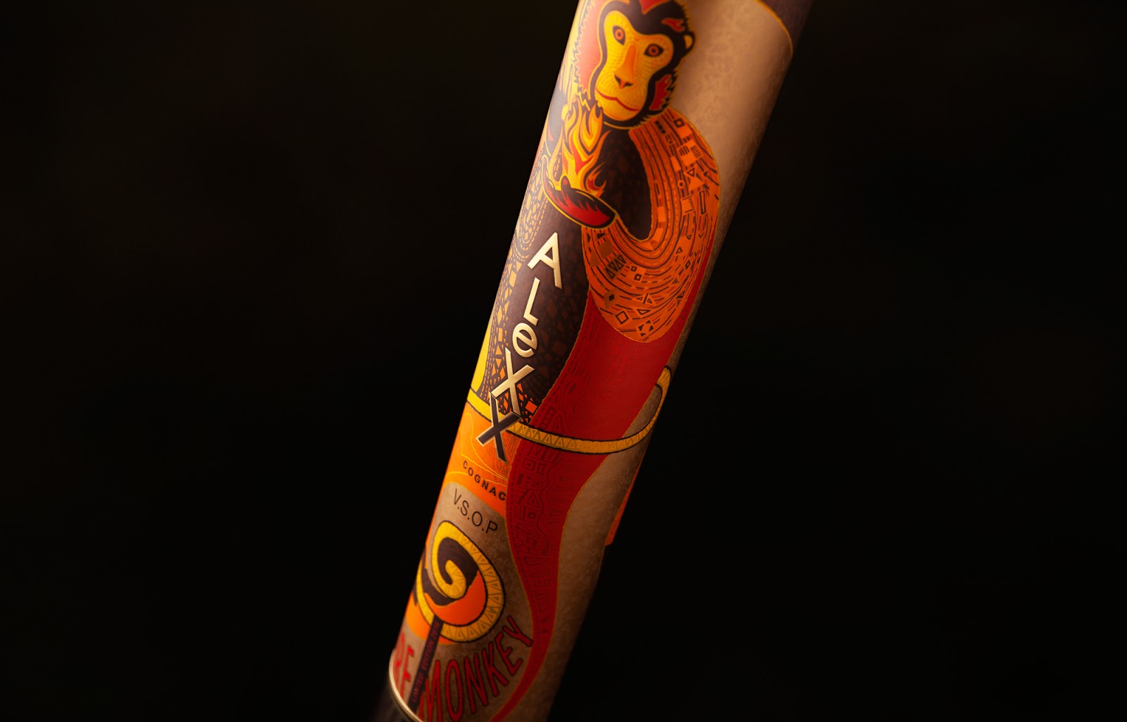 對于AleXX RED FIRE MONKEY,開發(fā)了精美的包裝,并附有一只猴子舉著火的插圖。這個符號表示這種聰明的動物所儲存的秘密知識-2016年的守護(hù)神,同時也向白蘭地發(fā)出了典故,在這種白蘭地的誕生中,火元素起著舉足輕重的作用。