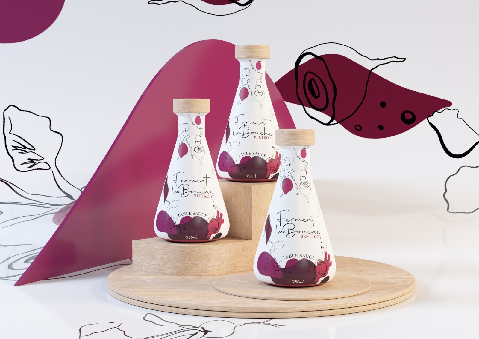 我們針對(duì)該系列的設(shè)計(jì)靈感來(lái)自“通過(guò)顯微鏡”的概念,窺視了不喜歡腸道的好細(xì)菌的世界,展示了煉金術(shù)般發(fā)酵過(guò)程中的運(yùn)動(dòng)感–冒泡,變形,變化并轉(zhuǎn)移到將生料變成舌頭發(fā)酵醬上的奇妙可口風(fēng)味。