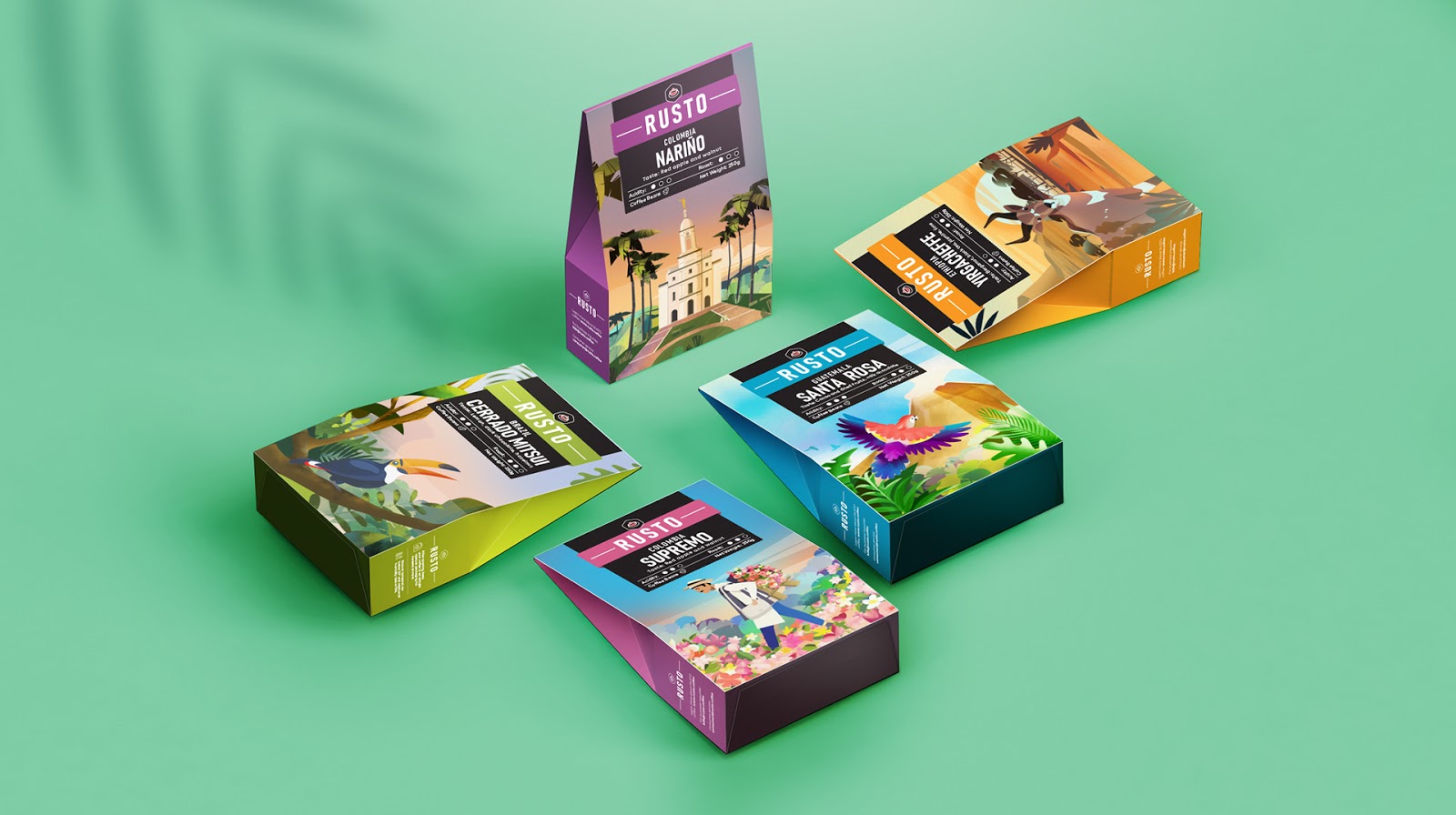 The result: We worked in a collaborative way with Rusto’s owner to get to the final result. Overall we used bright colors and illustrations that are predominant in order to increase the coffee’s visibility on the shelf. This way we managed to make Rusto an accomplished and modern brand that stands compared to it’s competition.