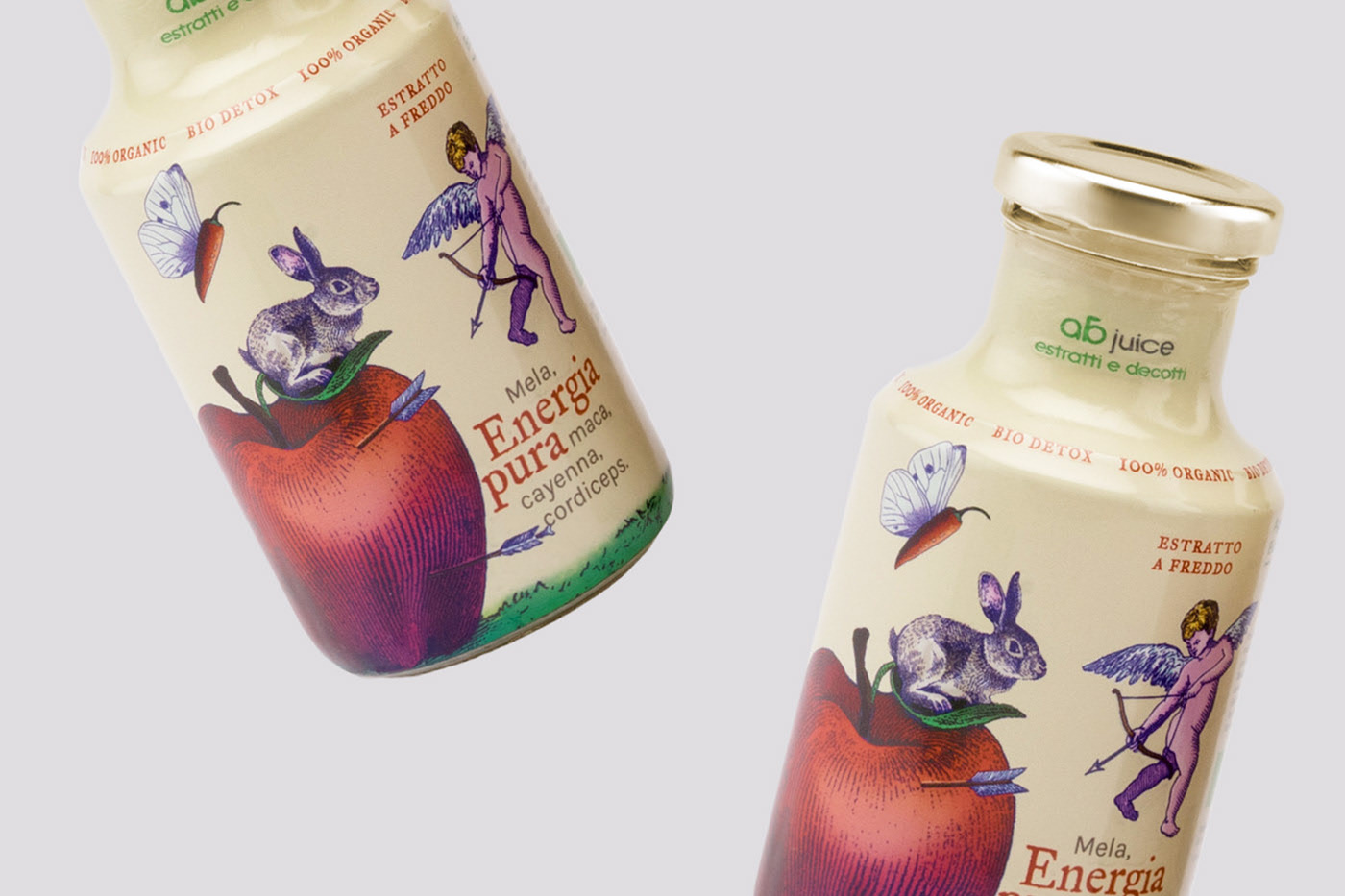標簽:果汁包裝設計 富有想象力的食物 新包裝 插畫標簽 超現(xiàn)實場景 ABJuice organic 品牌產(chǎn)品包裝設計公司