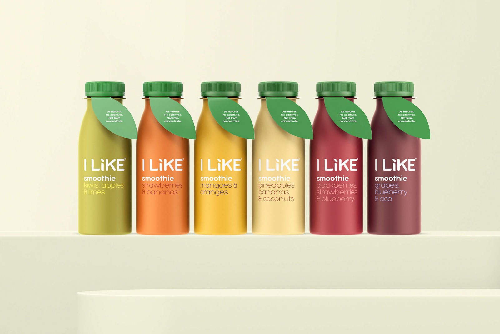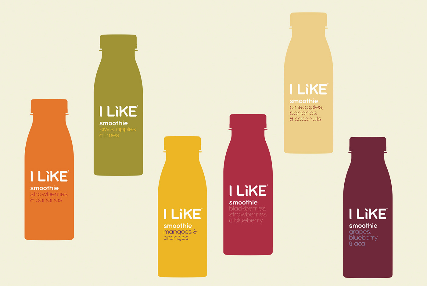 在開發(fā)命名時,我們希望在品牌名稱和產(chǎn)品類型之間建立聯(lián)系。結(jié)果是一個引人入勝,有趣的宣言-ILIKE /冰沙/葡萄或ILIKE /冰沙/芒果。這對整個產(chǎn)品線都適用。在開發(fā)包裝樣式的過程中,我們試圖最準確地傳達產(chǎn)品的自然性,飲料的原始顏色及其成分。結(jié)果是自然的,而不是浮華的啞光陰影。我們還添加了綠色的葉子-一些額外的元素,使包裝具有新鮮收獲的水果的圖像。