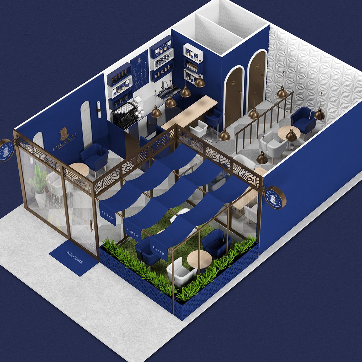 設(shè)計(jì)創(chuàng)意一個(gè)代表咖啡之王的符號(hào),賦予其挑剔,獨(dú)特和富麗堂皇的個(gè)性。此符號(hào)伴隨著整個(gè)企業(yè),豪華和精選概念的資源,藍(lán)色,圖案和紋理由獨(dú)特的力量和優(yōu)越性符號(hào)塑造而成,例如皇冠,員工,城堡的塔樓,標(biāo)志和旗幟。它還考慮到了鍍金或電鍍等金屬化印刷品,以進(jìn)一步體現(xiàn)精選概念。