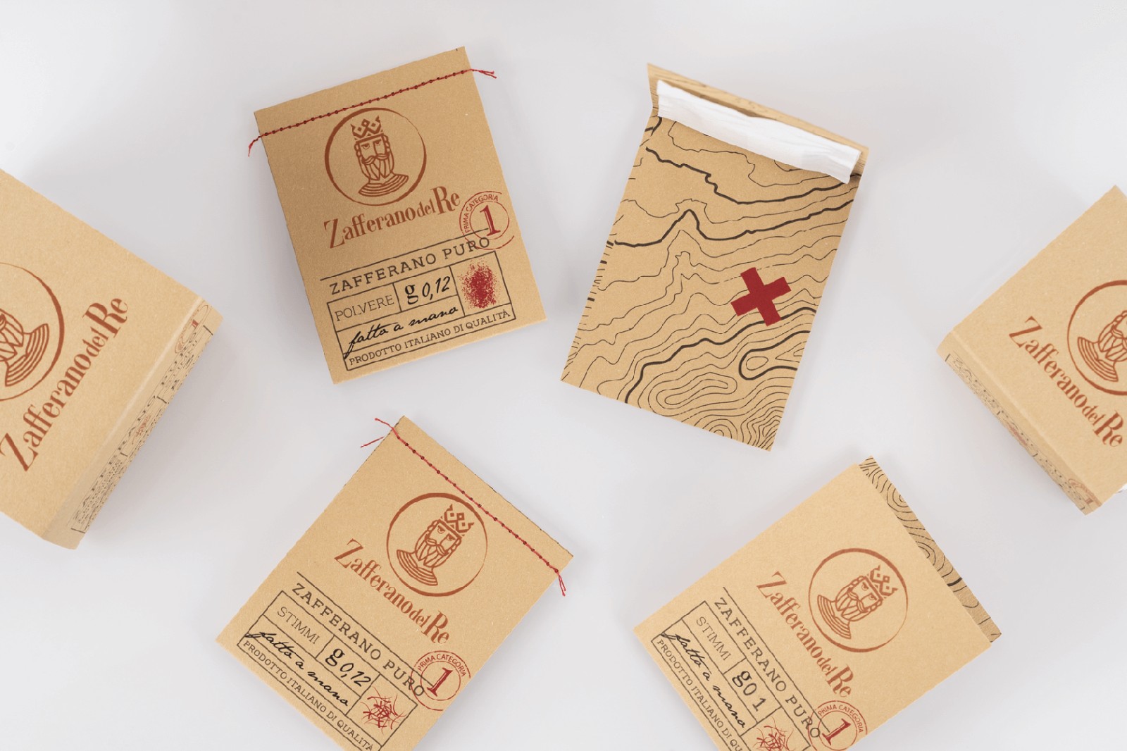 “ Zafferano del Re”徽標(biāo)是Alaric寶藏的傳說。一家年輕的公司培育出一種珍貴而古老的產(chǎn)品-藏紅花,它被稱為紅金,是地球的瑰寶。它在守衛(wèi)國王金幣的土地上如此精確地工作,該品牌以現(xiàn)代風(fēng)格代表不規(guī)則圓圈內(nèi)的國王阿拉里克(King Alaric)的面孔,讓人回想起古代鑄造的金幣形狀。包裝由明顯差的材料制成,并通過手工處理而高貴,例如,小袋由用藏紅花紅線進(jìn)行的接縫封閉。另外,為重申這一概念,每包都包含一張藏寶圖。
