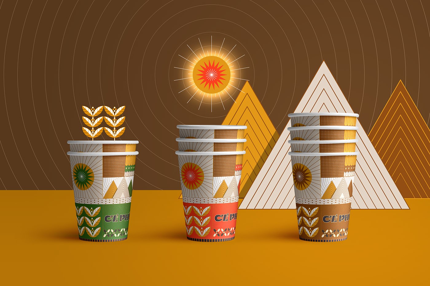 關(guān)于標(biāo)志,字體以咖啡作為標(biāo)志,根據(jù)居住在中部高地高地(如達農(nóng)、林同)的人們的文化和風(fēng)格進行風(fēng)格化。字體風(fēng)格化,以增加咖啡包裝的身份和美感。