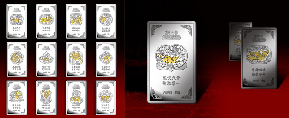 十二生肖珍藏銀牌,生肖浮雕與寓意吉祥的祝福語,典藏價值頗高。